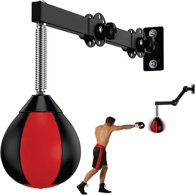 What You Get?-Comes with detailed instructions that are super easy to set up; 1 X punching ball (inflation pump included); 1 X boxing bag's bracket; 1 X high elastic springs; A pair each of expansion bolts and hex head lag screws. Easily mounts to wood or concrete walls
