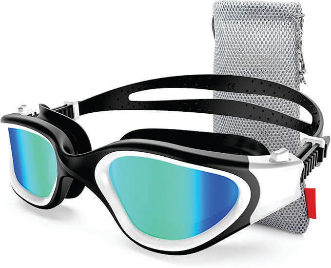 Anti-fog and Leakproof- The polarized swim goggles also feature an enhanced anti-fog technology that can ensure clear vision and protect your eyes, the 3D double seal frame provides excellent fit and water resistance, making them great for both indoor and outdoor training